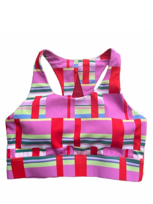 Pink and Red Striped Block Sports Bra